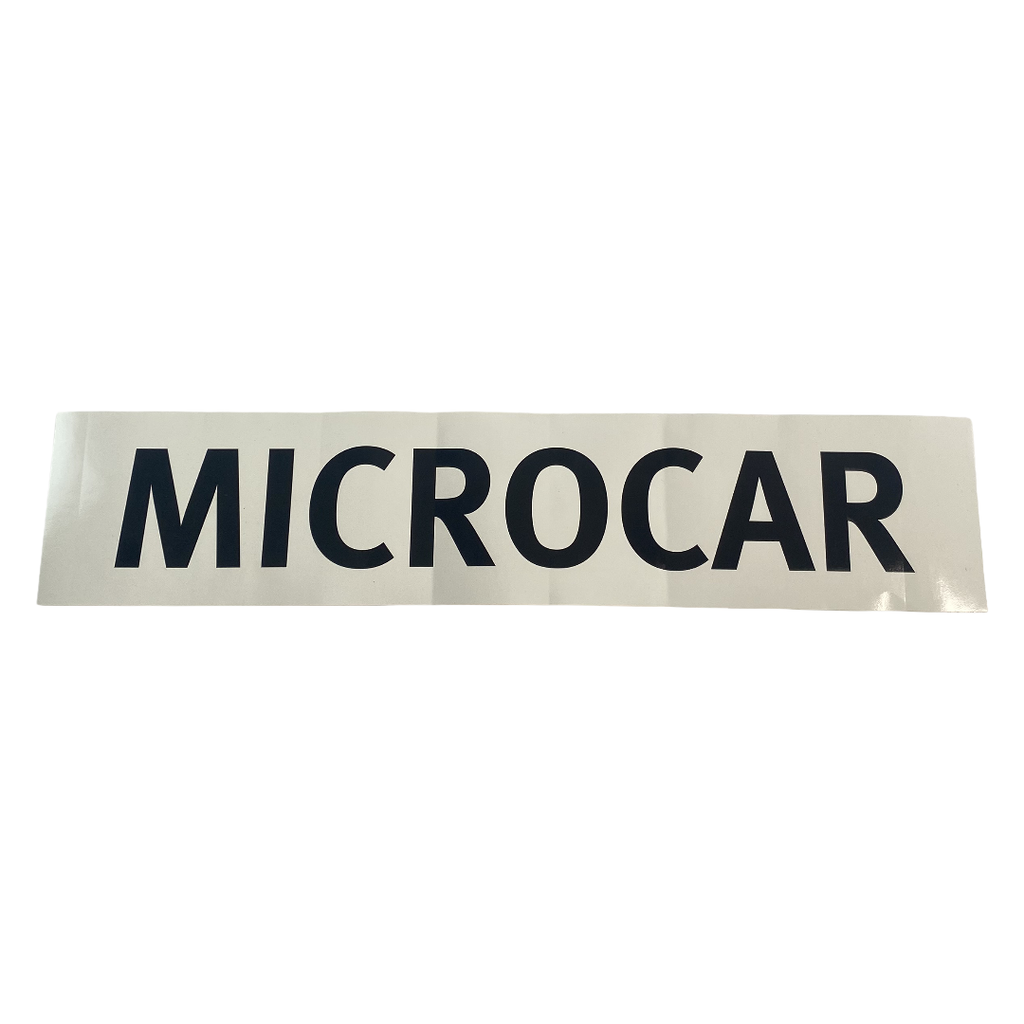 Emblem/klistremerke til Microcar mopedbil som gir fronten et friskt originalutseende og er enkelt å montere på eksisterende overflate.