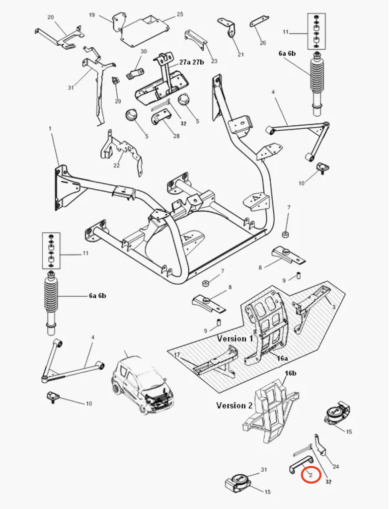 Beskrivelse av Fremre motorfeste Ligier JS RC & Microcar M8 / F8C / MGO 2