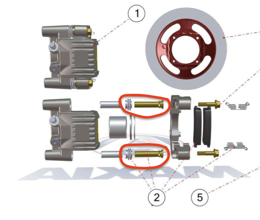 Beskrivelse av Glidebolter og støvmansjetter til bremsekaliper Aixam S8, S9 & S10