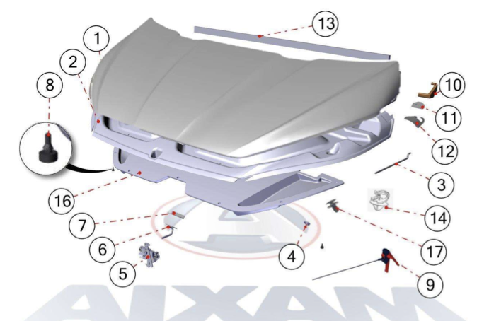 Hengsel / feste motorhjelm venstre Aixam 1997–2013