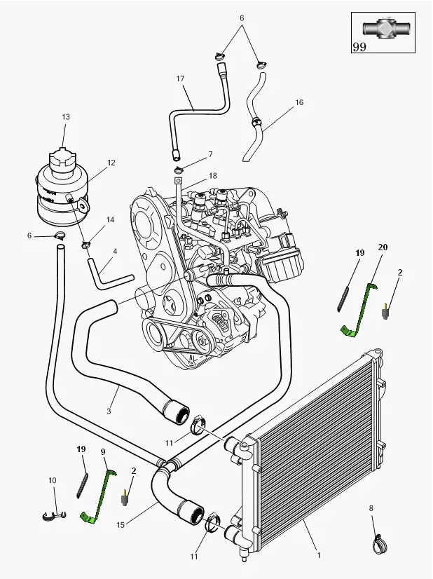 Kylerslange til varmeapparat for Ligier og Microcar mopedbil
