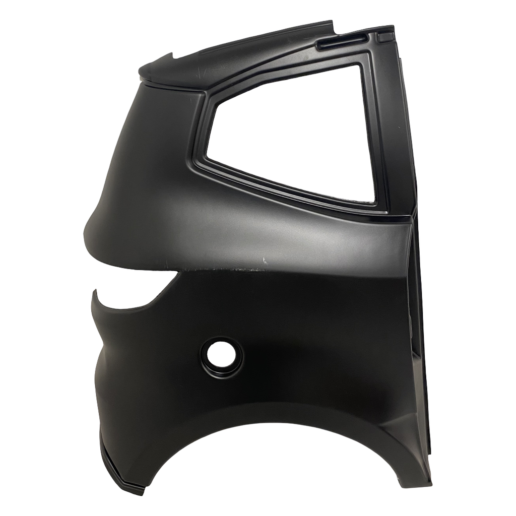 Sideskjerm / ytterskjerm til høyre side bak (passasjersiden) på Aixam mopedbiler. Leveres i ulakkert ABS-plast som må lakkeres før montering. Passer følgende modeller: