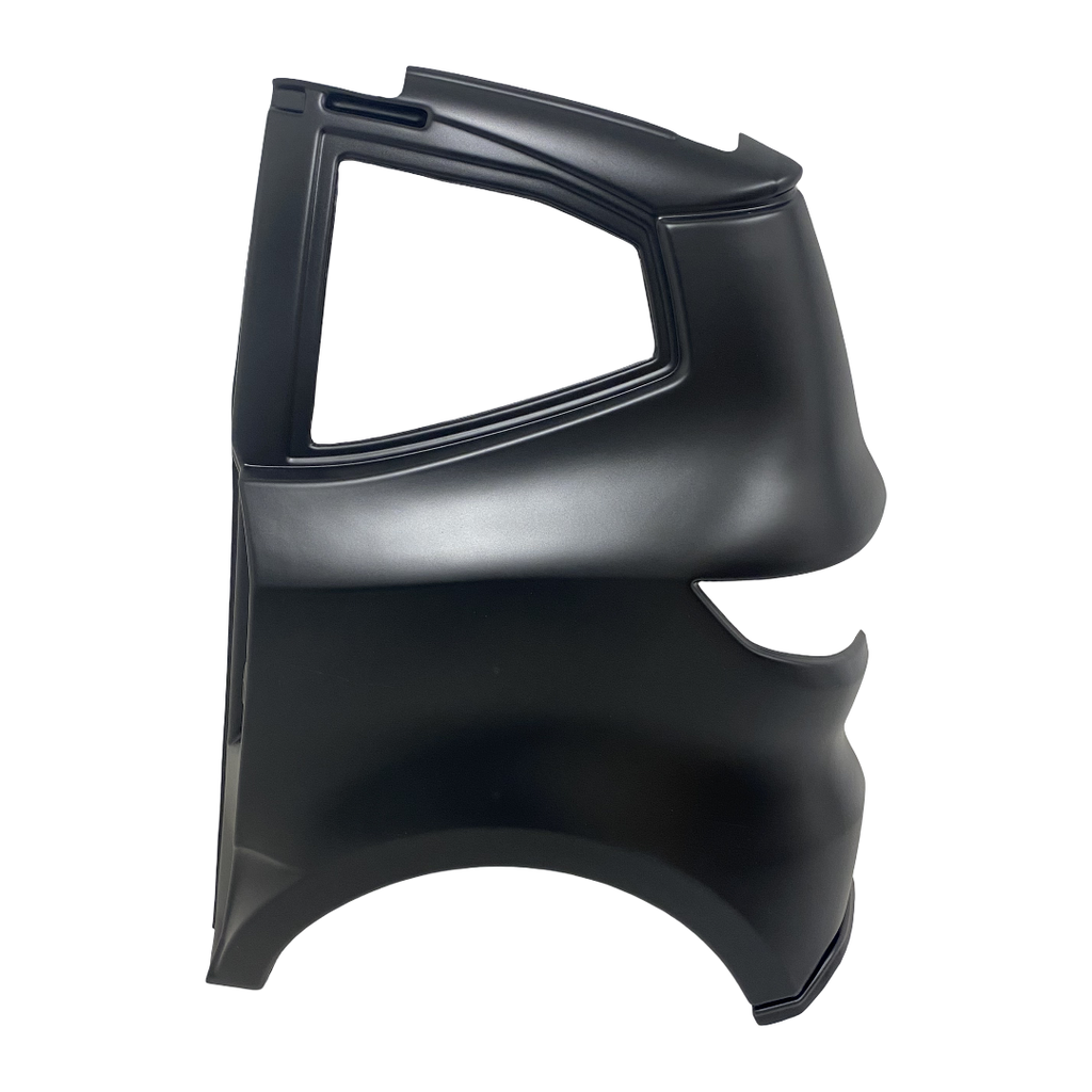 Sidoskärm / ytterskärm till vänster sida bak (förarsidan) på Aixam mopedbilar. Levereras i olackerad ABS-plast som behöver lackeras före montering. Passar följande modeller: