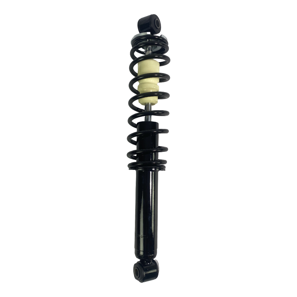 Bakre støtdemper komplett med fjær som passer til Ligier mopedbiler. Passer modellene JS50 (V5) og Myli.