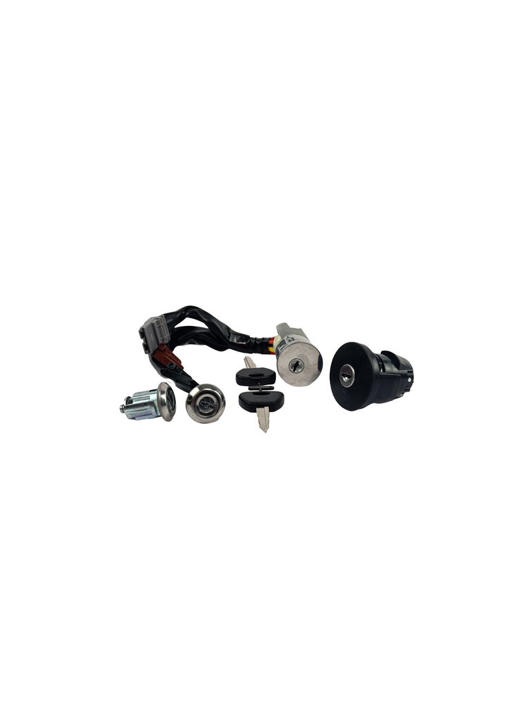 Komplett låsesett som inneholder tenningslås, dørlås, tanklokk og 2 nøkler til mopedbiler fra Aixam, Chatenet, Grecav & JDM, og passer til følgende modeller: